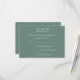 Créez votre propre calligraphie de typographie de script personnalisée, personnalisée et élégante, moderne, vert et blanc poussiéreux, carte d'invitation de mariage personnalisée RSVP. Entrez simplement votre date rsvp, la date du mariage et le nom de la mariée et du marié. Pendant que vous personnalisez, vous pourrez voir un aperçu, partout. Un mariage élégant RSVP pour tous vos amis et votre famille.