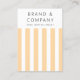 Carte d'affichage à oreille moderne et minimale avec rayures verticales jaune clair orange et blanc.