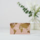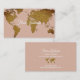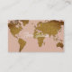 Un carte de visite pour un agent de voyage, ou tout autre professionnel... avec l'image d'une carte du monde en faux or (couleur ocher simulant l'or) sur un arrière - plan rose poussiéreux avec un nom manuscrit