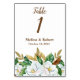 Cette élégante carte de table a des magnolias blancs aux centres jaunes et leurs feuilles traditionnels verts et marron. Vous pouvez le personnaliser avec vos noms et votre date. Vous modifiez le numéro de table et ajoutez chaque carte à votre carte. Il imprime sur les deux côtés de la carte. Il fait partie de l'Elegant Magnolia Mariage Suite. Veuillez vérifier les autres éléments à coordonner pour un beau mariage.
