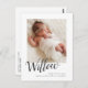 Cette carte postale élégante de faire-part de naissance présente le nom de votre nouveau-né écrit en calligraphie moderne sous votre photo préférée. Sous le nom du script, vous pouvez ajouter le nom complet, la date de naissance et les statistiques de naissance de votre bébé. Il y a de l'espace sur le dos de la carte postale pour écrire un message personnalisé plus long aux destinataires.