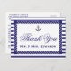 Customisez cette carte postale de Merci Nautique élégant et moderne. Motif rayé bleu marine et blanc avec ancre marine au sommet. Un modèle pour une personnalisation aisée de votre remerciement à votre famille et à votre invité mariage.Même design est disponible dans d'autres fournitures fixes mariage assorties pour porter le thème du mariage nautique dans le style.