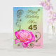 Une élégante rose rose sur un arrière - plan de travail de parchemin doré. Une belle carte qui fera plaisir à votre mère à l'occasion de son 45e anniversaire.