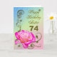 Une élégante rose rose sur un arrière - plan de travail de parchemin doré. Une belle carte qui fera plaisir à votre soeur à l'occasion de son 74e anniversaire.