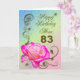 Une élégante rose rose sur un arrière - plan de travail de parchemin doré. Une belle carte qui fera plaisir à votre mère à l'occasion de son 83e anniversaire.