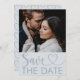 Élégante et moderne, voici une carte postale de mariage 'save the date' moderne. Sur le devant se trouve la photo du couple favori avec une calligraphie élégante 'Save the Date' avec des détails de cœur. Au verso, il y a de l'espace pour ajouter vos détails. Très facile à personnaliser avec vos propres informations.