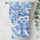 Motif de chinoiserie bleu et blanc historique restauré à partir du 18ème siècle textile avec flore exotique, pagodes et hommes engagés dans le partage de repas et de tuyaux.