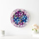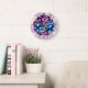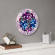 Elégante, violet et bleu rose fleurs photo horloge murale. Conception avec couleur arrière - plan personnalisée. Joli ajouter à votre intérieur.