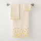 Élégant confetti doré sur le set de serviettes de bain beige sable clair. Du métal doré comme des confettis !