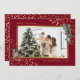 Elégantes cartes de Noël couleur rouge personnalisées avec cadre photo rouge foncé orné d'aquarelles illustrant des poinsettia, une lanterne et une branche de pins avec cônes et ornements de pin. Personnalisez facilement ces élégantes cartes photo de Noël aquarelle avec votre image et texte.