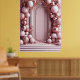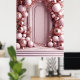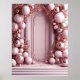 Luxueux agencement de ballons métalliques et rose pastel décorent un cadre classique et un intérieur orné, dégageant élégance et célébration. Parfait pour les événements, les arrière - plans ou les occasions festives.