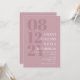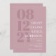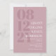 Faire-part de mariage de typographie élégante en rose muet avec votre date de mariage en grand nombre sur le côté de l'invitation. Ajoutez les noms et le libellé mariage en blanc.