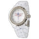 Élégante et élégante montre poignet pour femmes. © Radenbrea Studios à Zazzle. Cette montre élégante pour femmes a un visage blanc et une grande libellule. Très féminine et moderne.
