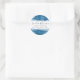 Élégantes étiquettes d'adresse de retour rondes comportant des bordures d'aquarelle bleue et des champs de modèle pour votre nom et adresse.