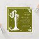 5,25 po x 5,25 po Elégante mariée avec des fleurs sur arrière - plan vert olive foncé. Élégant, entièrement personnalisable à utiliser comme invitation à la douche de la mariée.