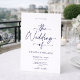 Cette faire-part de mariage blanche raffinée présente un design de script élégant dans une police bleue sophistiquée. L'arrière - plan blanc immaculé crée un look propre et intemporel, parfait pour une mariage romantique et élégante. Personnalisez-le avec vos détails pour une touche magnifiquement customisée. Idéal pour des thèmes mariages classiques, classiques et contemporains.