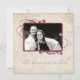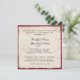 L'invitation présente une texture de papier parchemin avec des lignes frileuses de couleur vin rouge bordant un cadre autour de votre photo fiançailles avec un texte qui dit "avoir et tenir" d'un côté avec vos détails mariages de l'autre avec une bordure orange autour des bords de l'invitation.