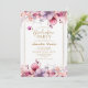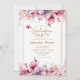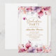 Cette élégante invitation à la fête de graduation florale présente un design d'aquarelle douce avec des fleurs roses et violettes encadrant le texte. Les accents dorés et la police de caractères stylisée ajoutent une touche sophistiquée, tandis qu'une petite icône de casquette rose améliore le thème festif. Parfait pour honorer un diplômé avec une esthétique féminine et classe. Entièrement personnalisable pour les détails personnels.