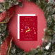 Ajoutez une touche de luxe à vos invitations de fêtes avec une véritable feuille d'or ! Cet élégant design présente des illustrations de style vintage inspirées de l'opulence de l'époque Art déco. Il comprend un renne bondissant, des arbres de Noël festifs et des étoiles, jumelé à une typographie rétro élégante. Personnalisez le modèle avec les détails de votre événement — des informations supplémentaires peuvent être incluses à l'envers. Un design unique qui allie style intemporel et modernité ! Les vrais éléments en feuille sont disponibles en or, argent ou or rose. Couleurs imprimées : rouge foncé, blanc et doré.