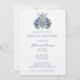 Doté d'une belle invitation à la douche de mariée catholique sur mesure avec une image vintage de la Vierge Marie, Notre-Dame de la Grâce superposée sur un Monogramme marié "M" aux fleurs bleues.