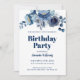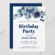 Elégante Floral Navy Blue Anniversaire Invitation modèle élégante pour une invitation d'anniversaire féminine dans un thème botanique en bleu marine et crème.
