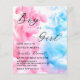 Un budget bleu et rose fumée thème bébé Genre Reveal invitation fête. Sur un arrière - plan gris, une élégante fumée rose et bleue engloutit le texte de la typographie noire qui dit "Garçon ou Fille" ?