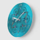 Élégante horloge en mandala turquoise. dégradé de look métal brillant dans les tons cool hued de bleu vert avec un mandala de fleurs de lotus assorti surligné de lavande, rose et argent.