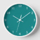 Élégante horloge murale minimaliste Turquoise, une belle horloge murale avec des numéros blancs élégants sur un arrière - plan de couleur turquoise.
