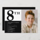 Elégante invitation 8ème anniversaire Black Chic Modern calligraphie typographie classique élégant garçon