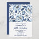 Elégante invitation 99e anniversaire Floral Vintage bleu rustique aquarelle