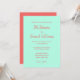 Une élégante invitation de mariage, ce design présente du texte corallien écrit sur un arrière - plan turquoise. Le dos est également recouvert de corail. Commandez les vôtres dès aujourd'hui !