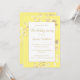 Elégante invitation d'anniversaire jaune soleil avec des feuilles beiges dorés pour un anniversaire chic et classe.