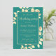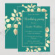 Elégantes invitations d'anniversaire vert foncé avec des feuilles beiges dorés pour un anniversaire chic et classe.