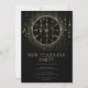 Invitation élégante pour la soirée du Nouvel An en noir et or. Le design présente une horloge élégante en or entourée de lumières scintillantes et de confettis de couleur or. Invitez amis et famille à une fête moderne des Fêtes avec cette invitation pour le Nouvel An qui peut être personnalisée avec l'inclusion des détails de votre soirée.