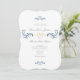 Cette invitation de mariage vintage baroque sophistiquée arbore un fond blanc, magnifiquement rehaussé de détails floraux bleus poussiéreux doux et d'un cœur de corde dorée romantique. Personnalisez-la en ajoutant un QR code pour RSVP et votre site web de mariage pour plus d'informations. Une fusion étonnante d'élégance intemporelle et de charme doux et romantique, elle crée l'introduction parfaite à une célébration raffinée et mémorable.