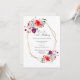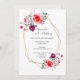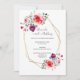 Faire-part de mariage florale. Roses sauvages à l'aquarelle artisanale avec cadre géométrique doré sur arrière - plan blanc.