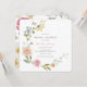 Une délicate invitation à la douche nuptiale avec des fleurs d'aquarelle et un papillon doux. L'élégante écriture et les tons pastel créent un design intemporel et romantique, parfait pour célébrer la future mariée.