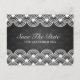 Élégant design d'invitation de mariage "Save The Date" avec un motif festonné romantique noir, et des noms et date personnalisés. Impressionnez votre famille et vos amis avec ce design élégant et moderne. Entièrement personnalisable !