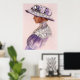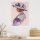 Portrait d'une jolie femme victorienne en dentelle lavande et casquette fleurie. Elégante affiche de décoration reproduite à partir du tableau pastel original "Lavender Lace" de Sue Halstenberg.