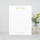 Élégant script or lettre personnalisée papier stationnaire avec monogramme. En haut - nom en texte de script or, en bas - en bas - ligne d'adresse en texte clair. En bas - monogramme de script.