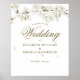 Elégante enseigne de bienvenue fleurie blanche et fleurie mariage avec des fleurs printanières délicates encadrant vos détails mariages en lettres d'or élégantes. Personnalisez avec vos détails d'évènement spéciaux en texte or chic. Conçu par Thisisnotme©