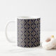 Il s'agit d'une tasse en céramique design, ornée d'un arrière - plan bleu profond et d'une motif géométrique blanche complexe. Le design est à la fois élégant et intemporel, ce qui le rend parfait pour un usage quotidien ou comme pièce décorative. Sa poignée robuste et sa finition lisse assurent confort et durabilité, idéal pour savourer vos boissons chaudes ou froides préférées.