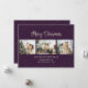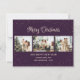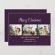 Elégante photo violette personnalisée Joyeuses cartes de Noël avec un collage photo et la chute de neige sur un arrière - plan violet foncé. Personnalisez facilement cette carte de Noël violette avec vos images préférées, un nom de famille et un texte.