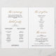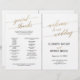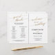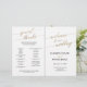 Cet élégant programme plissé de calligraphie dorée et noire est parfait pour un mariage simple et moderne. Le design neutre présente une carte minimaliste décorée avec une typographie romantique et fantaisiste de feuille d'or. Inclure le nom de la mariée et du marié, la date du mariage, le devis, l'ordre de service, la fête de la mariée, le calendrier de réception, le menu du dîner et les remerciements spéciaux. Remarque : Ce design ne comporte pas de véritable feuille d'or. C'est un graphisme de haute qualité fait pour ressembler à du papier doré. Veuillez noter : Ces programmes arrivent à plat, vous devrez les plier en deux à leur arrivée.