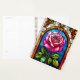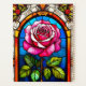 Vivid vitrail avec un rose central aux détails riches et complexes. Cette composition vibrante présente des couleurs vives, un artisanat magistral et une essence artistique intemporelle parfaite pour des inspirations de design.