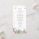 Jolie, estivale et élégante, cette carte de menu de douche nuptiale présente un joli design de fleurs roses et violettes avec des papillons et des abeilles bourdonnantes volant autour. Vous pouvez customiser tous les détails du texte et du placement graphique à vos besoins spécifiques. Veuillez contacter le concepteur pour obtenir les produits correspondants qui ne sont pas disponibles.