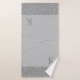 Sur cet ensemble de serviettes de bain élégant est un fond gris pour le contraste avec de petites plumes d'argent glacé comme une bordure. Élégant minimaliste moderne. Peut être personnalisé avec une lettre sur la grande serviette.