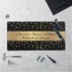 Élégante Parties scintillant d'or Sparkle Black Stylish Desk Mat est moderne et élégant. Il est idéal pour utiliser tous les jours pour votre bureau. Il fait également un grand cadeau personnalisé aux personnes spéciales de votre vie. Personnalisez-le avec vos informations.