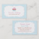 Ce carte de visite se décline en bleu pastel clair et en rose. Doté d'un cupcake au délicieux glaçage tourbillon et d'un cadre de pétoncle avec des points de suture roses, ce carte de visite élégant et classe est parfait pour un pâtissier en cupcake.