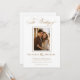 Annoncez votre journée spéciale avec notre superbe Faire-part de mariage Brown & Blanc avec un script élégant et une photo personnalisée du couple heureux. Ce design classique respire le raffinement et la romance, ce qui en fait un choix parfait pour les couples qui apprécient la beauté intemporelle. Caractéristiques : Photo personnalisée : Montrez votre amour avec une image chère. Élégant script : Un script brun raffiné sur un arrière - plan blanc immaculé pour une touche sophistiquée. Impression de haute qualité : Veiller à ce que chaque détail soit capturé magnifiquement. Entièrement personnalisable : Personnalisez le libellé pour refléter votre histoire d'amour unique.